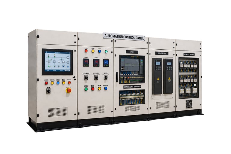 Automation Control Panels are designed to manage and automate industrial processes with precision and efficiency. These panels integrate advanced control systems to monitor, regulate, and streamline operations, reducing manual intervention and ensuring consistent performance across various applications.