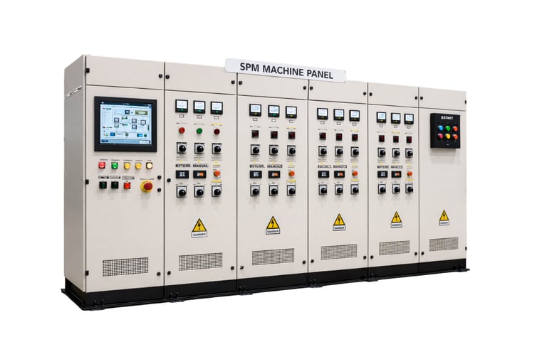 SPM Machine Panels are specially designed control panels built to operate and manage Special Purpose Machines used in customized industrial applications. These panels are tailored to meet specific process requirements, ensuring precise control, smooth functionality, and reliable performance of specialized machinery.