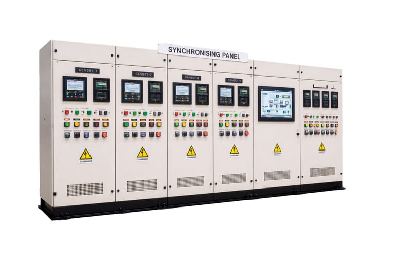 Synchronising Panels are designed to manage and synchronize multiple power sources such as generators and mains supply. These panels ensure that voltage, frequency, and phase are properly aligned before connecting power sources, enabling seamless power transfer and uninterrupted operations.